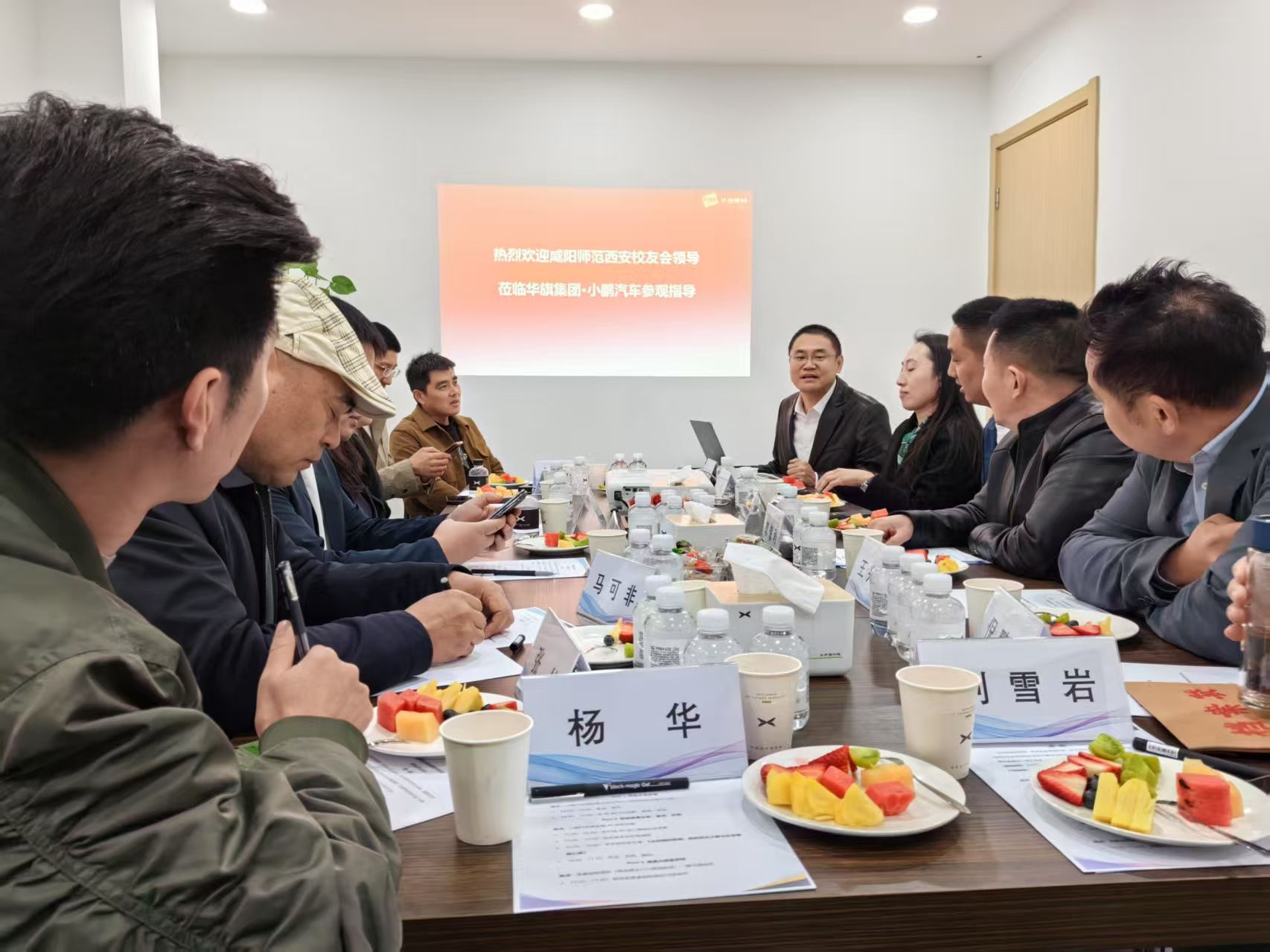 15:40,在小鹏汽车4S店会议室召开座谈会,sjb世俱杯官方网站西安校友会会长王彪热情致辞,向李文彪校友及华旗集团表达诚挚感谢,对拨冗参加本次走访活动的母校校友总会老师、咸阳校友分会会长马可非、机电校(农机校)校友分会会长郭耀利及其他12位校友的到来表示热烈地欢迎。